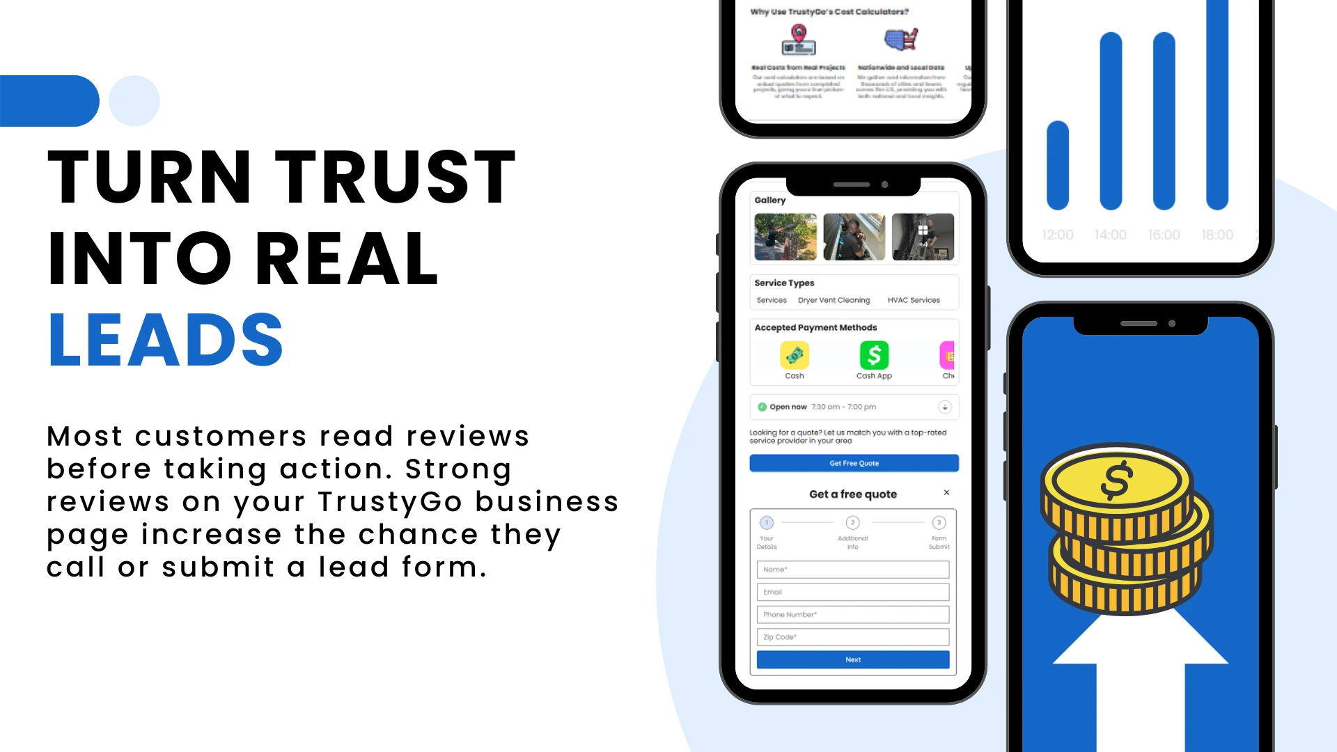 Your TrustyGo business profile builds confidence with social proof while using lead forms and clear CTAs to convert visitors into real inquiries.